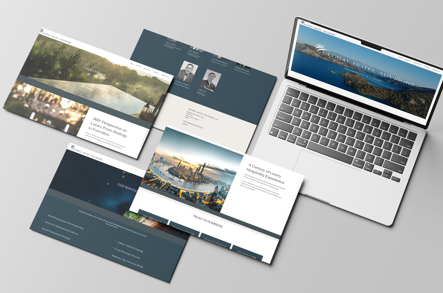 Global Hotel Advisors required a brand identity that could command respect in the ultra-luxury hospitality sector while reflecting over a century of combined industry expertise.